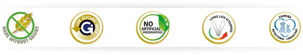 Aliment complet et sans céréales pour chats adultes à base de viande de poulet fermier et de fruits de grenade, additionné de légumes et de fruits fonctionnels et contenant des extraits de plantes. Recette de poulet et fruits de grenade.