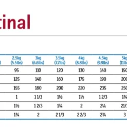 | Poids du chat (kg) | 2 | 2,5 | 3 | 3,5 | 4 | 4,5 | 5 | 5,5 | 6 | 6,5 |