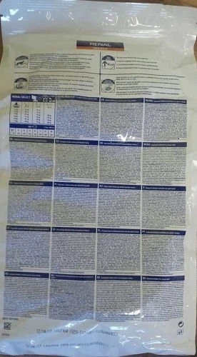 RENAL SELECT sec est Ă©galement indiquĂ© pour la rĂ©duction de la formation des calculs d’oxalate, en raison de sa faible teneur en calcium et vitamine D, et de ses propriĂ©tĂ©s d’alcalinisation de l’urine. RECOMMANDATIONS : Avant utilisation ou prolongation de la durĂ©e d’utilisation, il est recommandĂ© de demander l’avis d’un vĂ©tĂ©rinaire. Utiliser au dĂ©part RENAL SELECT sec pour une durĂ©e allant jusqu’Ă 6 mois en cas d’insuffisance rĂ©nale chronique et rĂ©duction de la formation des calculs d’oxalate.